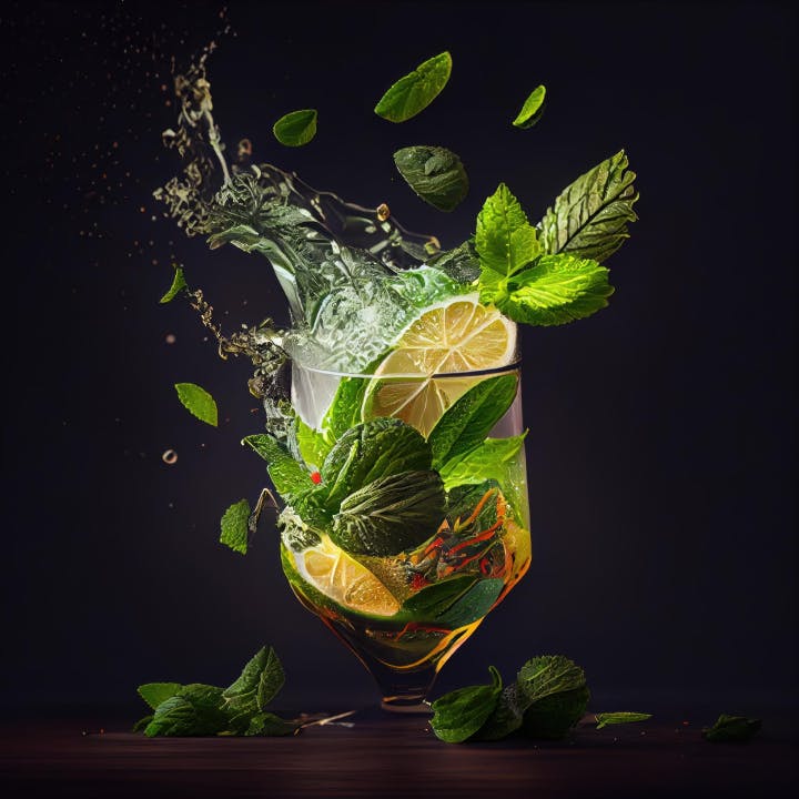 Weißer Rum, Gepresste Limetten, Brauner Rohrzucker, Lime Juice, Frische Minze, Soda